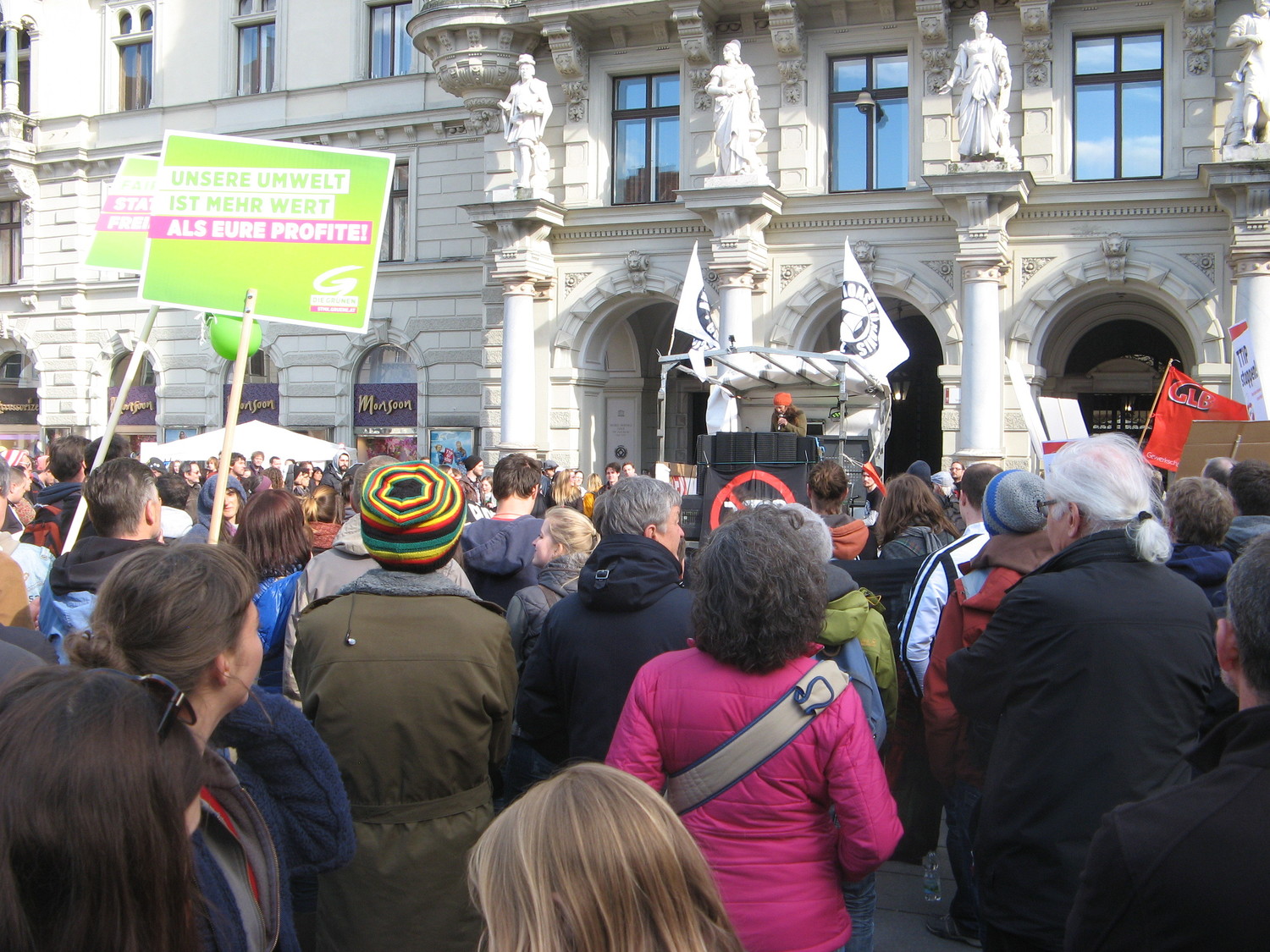 Am 18. April 2015 fand der weltweite Aktionstag gegen die Handelsabkommen TTIP, CETA und TiSA statt. Hunderttausende Menschen gingen auf die Straße und protestierten gegen Handelsabkommen, die Konzerninteressen über die Interessen von Mensch und Umwelt stellen. Auch in Wien, Salzburg, Linz, Klagenfurt, Graz, Innsbruck, Vöcklabruck, Freistadt, Wiener Neustadt, Villach und Gmunden gab es kreative Aktionen und Demos gegen TTIP, CETA und TiSA und für eine alternative Handelspolitik. Alle Infos und eine laufend aktualisierte Übersicht unter: www.ttip-stoppen.at/