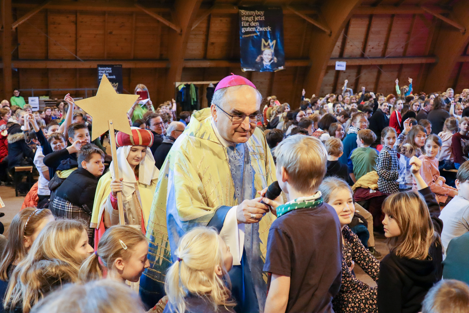 Nach dem traditionellen Würstlessen animierte eine Band die Kinder zum Mitsingen und Mittanzen. Währenddessen stand unser Bischof wieder für Selfies und Gruppenfotos zur Verfügung.