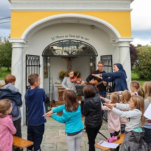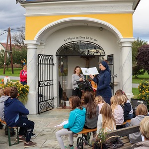 Die Familienwallfahrt führte diesmal von der Pfarrkirche nach Dobl-Dorf – aber nicht direkt. Mit einigen Stationen führte der Weg über den Oberberg durch den Kaiserwald nach Dobl-Dorf. Dort feierten wir dann eine Wortgottesfeier, nach welcher wir noch auf eine Jause eingeladen wurden.