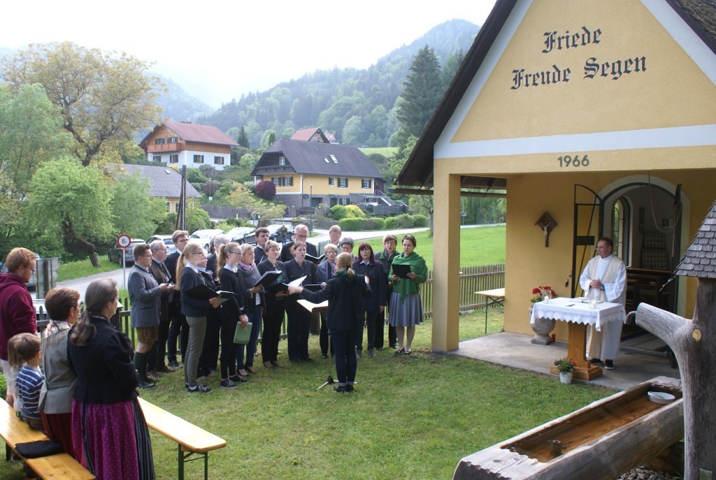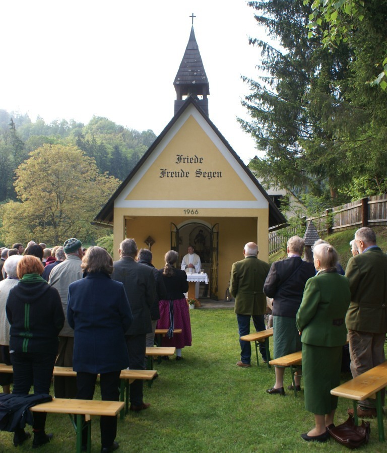 An der idyllisch gelegenen Nepomuk-Kapelle feierte eine zahlreich erschienene Gottesdienstgemeinde mit Pfr. Ruthofer die Vorabendmesse. Musikalisch umrahmte die Sängerrunde Laufnitzdorf die Feier. Nach dem Segen läutete unser Pfarrer die Glocke und leitete zur Agape über. Alle blieben und genossen die Getränke, stärkten sich mit gutem Bauernbrot und hatten einander vieles mitzuteilen.