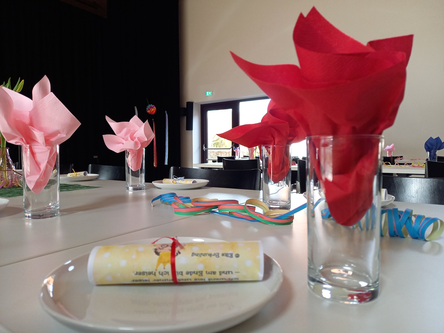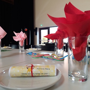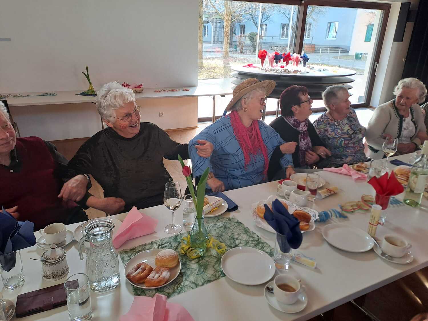 Die fleißigen Hände vom Pfarrgemeinderat und unserem Team des Begegnungsnachmittags haben den Saal wunderbar geschmückt und einige haben Krapfen und Strauben für die Besucher gebacken.