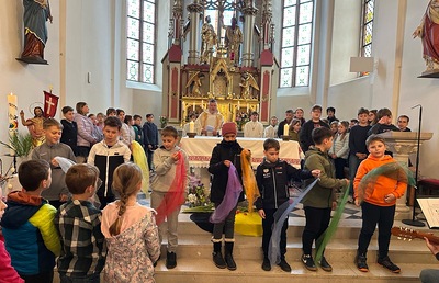 "Viele, viele Menschen" folgten der Einladung zur Segnung der Palmzweige am Palmsonntag. Mit diesem Festtag beginnt die Karwoche in der wir im Besonderen an den Leidensweg Christi denken. Ein besonderer Dank gilt den vielen fleißigen Händen, die im Vorfeld die vielen Palmzweige gebunden haben und die Kirchen für das Fest gereinigt und geschmückt haben.